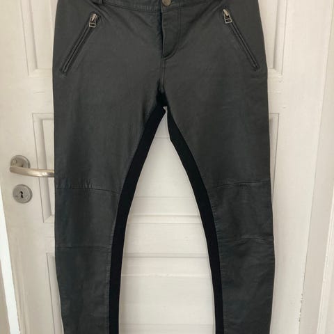 2 lommer foran og 2 bagpå samt lynlås. Egnet til hverdagsbrug og forskellige anledninger. En uundværlig skindbuks. Brugt ganske få gange.