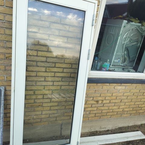 Terrassedør 98,5x212 cm i træ/alu. 2-lags sikkerhedsglas fra 2019, friskluftsventil, lavt alubundstykke, 3-punktslås og paskvil greb påmonteret. Udfræst not i venstre side/top og 80 cm fra bund i højre side for lysning, set indefra. Døren er hængslet højre ud. Antracit grå udvendig og hvid indvendig. Produceret af Idealcombi. Dimension B: 98,5 X H:212 X D:12 cm. Se evt. lignende artikler her: https://kingogenbrug.biz/vare/velfac-terrassedoer-trae-alu-hvid-95x212cm/ https://kingogenbrug.biz/vare/velfac-terrasse-doer-med-en-fyldning-trae-alu-hvid/ https://kingogenbrug.biz/vare/terrassedoer-878x2098mm-v/