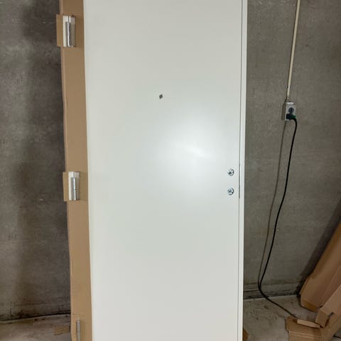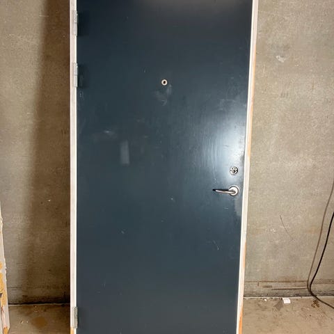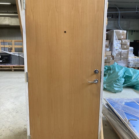Brand- og lyddørsparti BD60 146,5x270cm i træ til indendørs brug. Dørpladen måler 81,5x203cm og er med vrider inde, afblændet lås ude. Glasset er Pilkington Pyrostop, 60-101, 1 (B) 1, 23mm. Ukendt producent. Partiet har nogle skrammer i træet, specielt på udvendig side, samt gamle lister. Dimension B:146,5 X H:270 X D:12cm Se evt. lignende artikler her: https://kingogenbrug.biz/vare/brand-og-lyd-doer-bd30-35db-89x205cm-hoejre-haengslet-2/