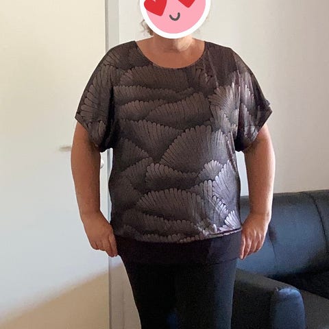 Fin lang sort bluse fra DNY. Kun brugt et par gange - str. large (50-52)