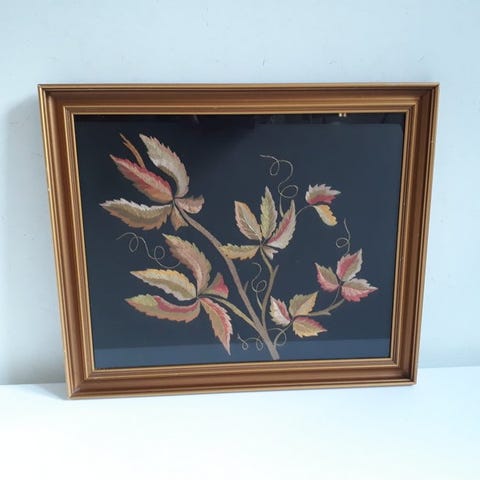Stort broderet blomster billede. ca 40 år gammelt i flot stand.