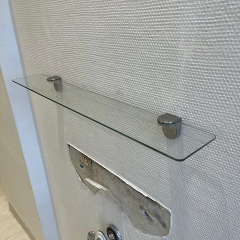 Fin hylde i glas med slibninger i glasset