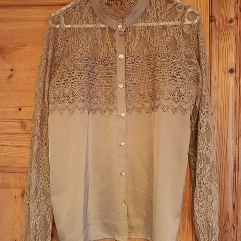 Fin sort skjorte med guldprint fra Christy. Kun brugt en gang - Str. 56 (xl) - ærmerne kan knappes op, så de bliver kortere
