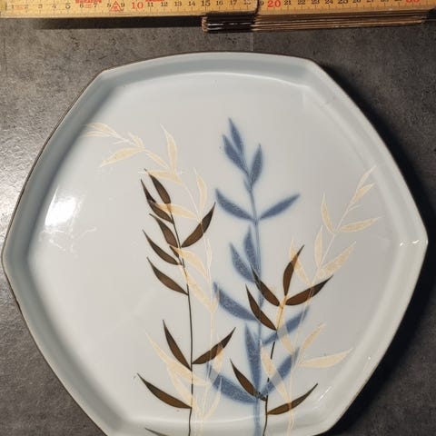 Bing & Grøndahl Sekskantet Porcelænsfad med Farvede Dekorationer