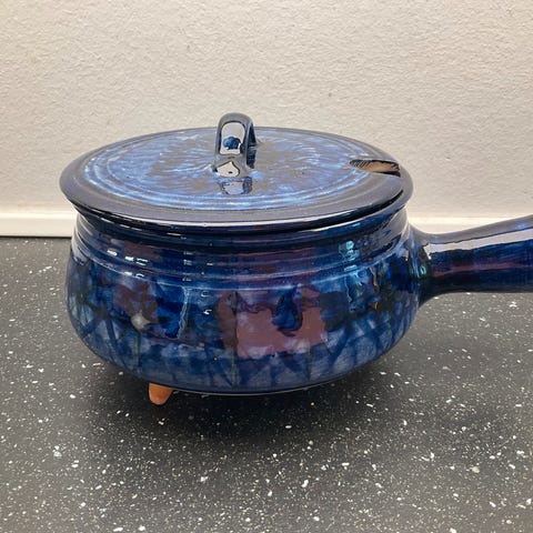 Blå keramik krukke med kork låg - Ø12 cm - 12,5 cm høj