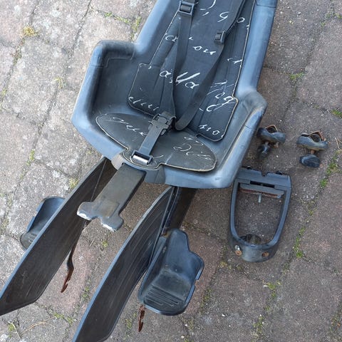 Verdens bedste børnesæde til cyklen. Frontmonteret. Vindskærm og beslag medfølger. Info på billeder.