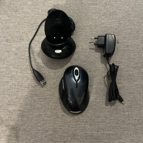 Logitech MX Master trådløs mus sælges. Den fungerer helt fint bortset fra den øverste knap, der normalt skifter mellem træk (ratchet) og fri rulning (free-scroll) – den virker ikke længere.