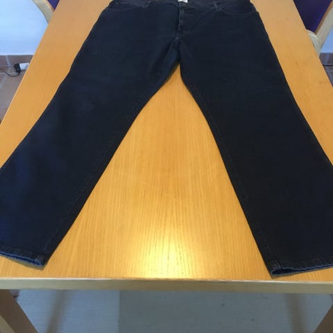 Livvide 76 cm. Benlængde fra skridt: 77 cm.