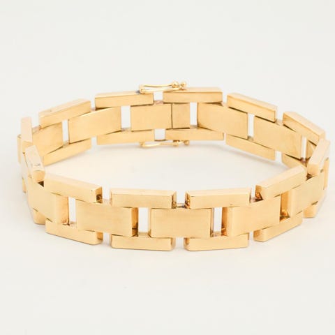 Guld Armbånd i 14 karatEstimeret nypris: 37000,00 kr\nModel: Blok\nVægt: 20 gram\nLængde: 19.5 cm\nBredde: 8.7 mm\nStand: Som ses på billeder, god stand med almindelige brugsspor og slidtageHos anotherslegacy.dk får du:\n✓ Gratis fragt på alle produkter\n✓ Pakken sendes inden for 1-2 dage\n✓ Din pakke er forsikret under transport\n✓ 14 dages guld bytte- og returretHos anotherslegacy har vi høje standarder, til de produkter vi sælger:\n• Alle produkter er blevet ultralydsrenset\n• Alle produkter er gennemgået for fejl og mangler\n• Alle produkter har fået en lødighedstest i røntgen maskine. Vi sælger IKKE forgyldte genstande\nBook en fremvisning i dag.Butik:\nH. C. Andersens Blvd. 38 st. tv., 1553 København V\nMandag-Fredag 09:00-17:00\nGG130966