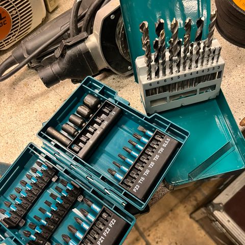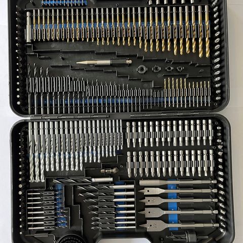 Sælger en lidt brugt sæt af alverdens borer og bits. Nogen mangler men dem der er ikke slidt.