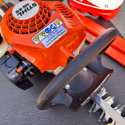 Veteran Hækkeklipper motor ok men tandhætte og tandkabler er røget af totalt fed maskine fra dengang da det hed West germany