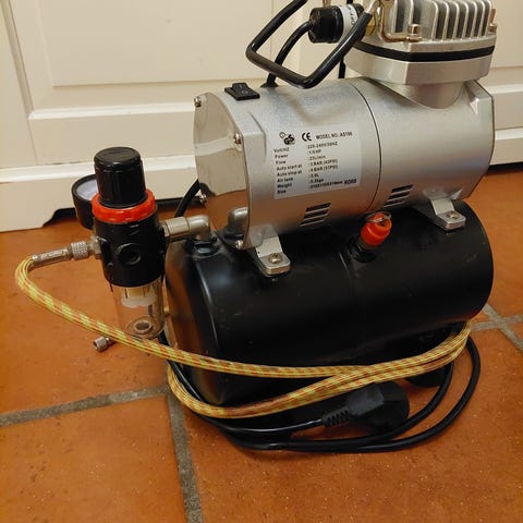 Den kan bruges med en konventionel airbrushkompressor. Kan anvendes til både opløsningsbaserede farver og vandbaserede farver.