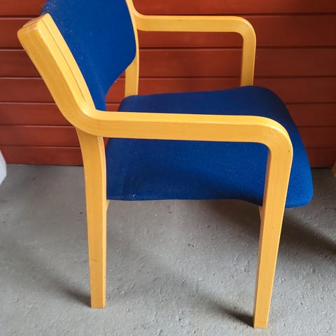 Strit julefrokost, konfirmation og lign. Ekstra stole. 8 stk stole. Sædder lidt falmet, men som nye med stålben og armlæn. Kan stables.