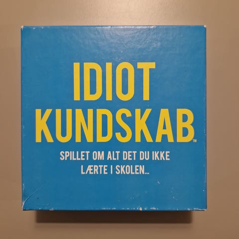 Idiot Kundskab brætspil med fokus på spørgsmål om emner, der ikke læres i skolen. Spillet leveres i en blå æske med gul tekst. Komplet. Sender ikke for køb under 200 kr.
