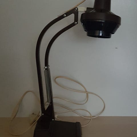 LEDU WASO, Fed vintage bordlampe Ledu, model 3842 i retro brun farve fra 60'/70'erne. Svensk bordlampe fra den svenske producent Waso. Max. 40 W. Lampen er stabil og helt funktionsdygtig, dog med lille skade i plastik /se foto nr. 12/. Fra ryge-og dyrefrit hjem. Gode P forhold ved afhentning på adressen.
