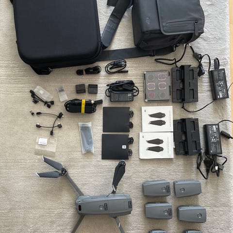 Jeg sælger min dji mavic pro 2 drone, fordi jeg slet ikke bruger den. Den er blevet brugt lidt på ferier, og den står bare og samler støv. Jeg har Fly More Combi. 3 batterier, rejsetaske, biloplader og en multioplader. Jeg har også en hardshell-kuffert og nogle ekstra propeller, hvis det er nødvendigt, og alt det tilbehør, du ser på billederne. Jeg har den originale emballage og kvittering.
