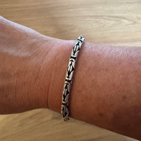 Sælges: Et smukt og elegant armbånd i den meget eftertragtede Kongekæde-type (Byzantine link) i ægte S 925 sterlingsølv!