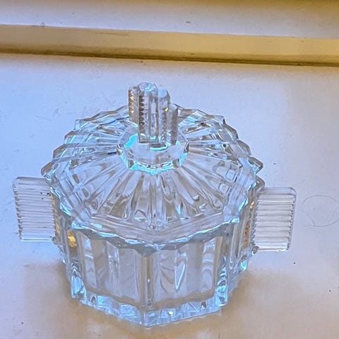 Nag på et af glassenes fod og lille nag på øverste kant på andet glas. Synes ikke i helhedsindtrykket.