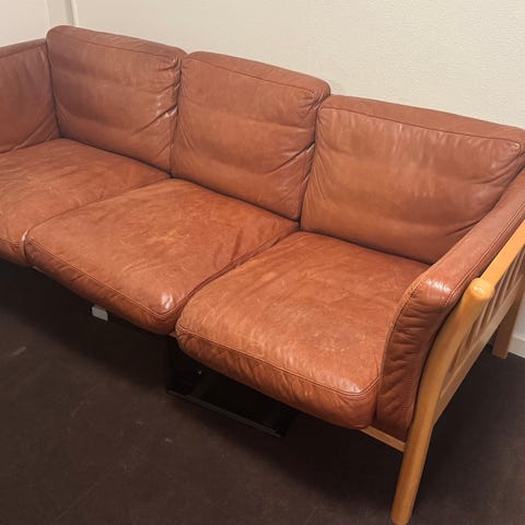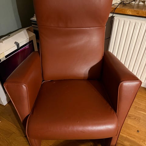 Lædersofa, 2 og 3 personers samt lænestol, der kan justeres i ryggen