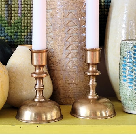 Stagerne er udført i varm glødet messing og midderstykket i en mørk varm rødt glas balystrer.
