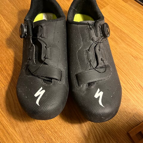 Specialized cykelsko i størrelse 44, sort farve. Designet til cykling med tre justerbare spænder for optimal pasform. Materialet er holdbart og egnet til sportsbrug.