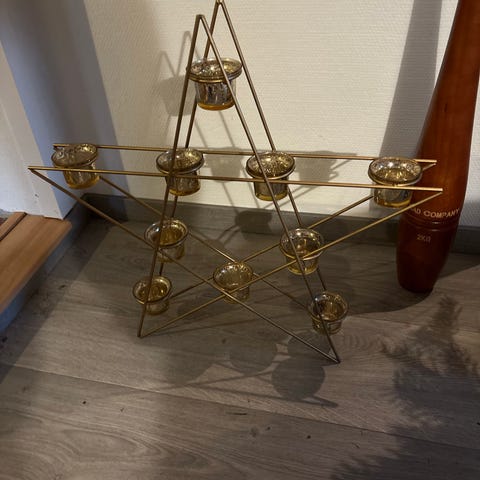 Til fyrfadslys, formet som en julestjerne. Rigtig fin til julepynt.