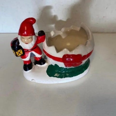 Gammel nisse med lanterne og potteskjuler, Nisse Med lygte lanterne og krukke til Blok lys grand eller julepynt, Med patina 9x8 cm Retro