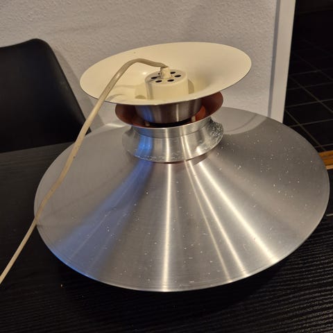 Den har ridser og en bule, se billeder. Den har ingen fatning.