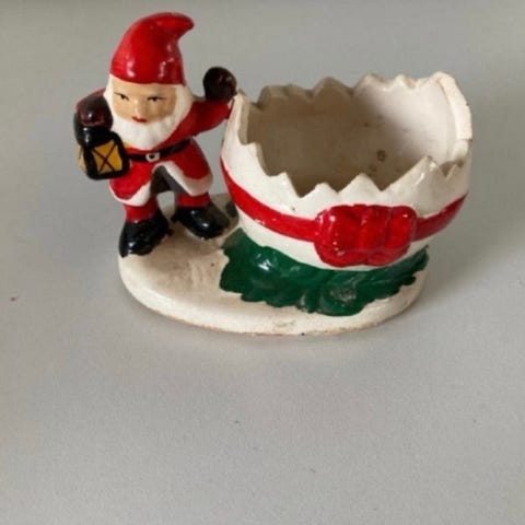 Gammel nisse med lanterne og potteskjuler, Nisse Med lygte lanterne og krukke til Blok lys grand eller julepynt, Med patina 9x8 cm Retro