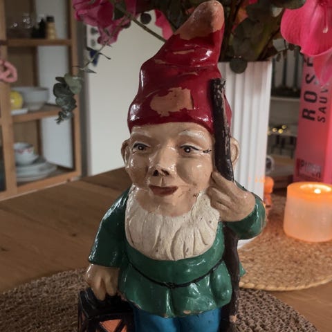 Gammel nisse med lanterne og potteskjuler, julepynt