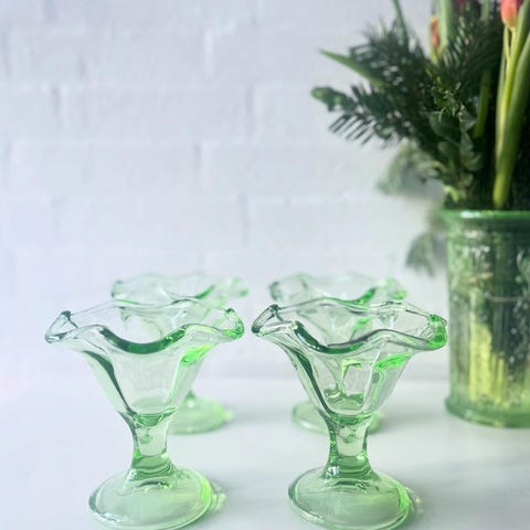 4 smukke dessertglas fra svenske Reijmyre 💚 Helt fejlfrie og i en skøn grøn farve. 75 kr pr stk.