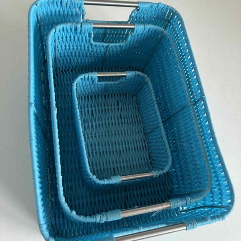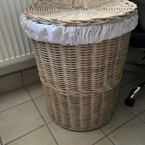 Kurven har en firkantet form og to indbyggede håndtag til nem transport. Materialet er naturligt flet, hvilket giver et robust og dekorativt opbevaringsløsning.