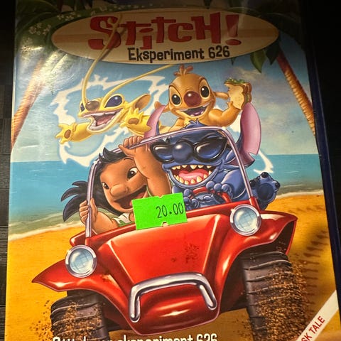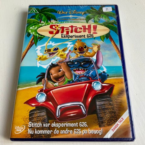 Disney Stitch Eksperiment 626 DVD med film i norsk tale og ekstra materiale. Inkluderer to DVD-plater med hovedfilm og bonusinnhold som 'Den snøve lava', 'Paris blir legge', og 'Bug innkvarter - dokumentar'. DVD-en har Dolby Digital 5.1 lyd og er produsert av Walt Disney Studios Home Entertainment.