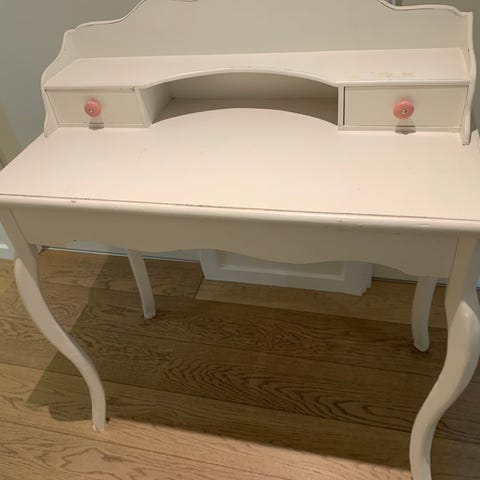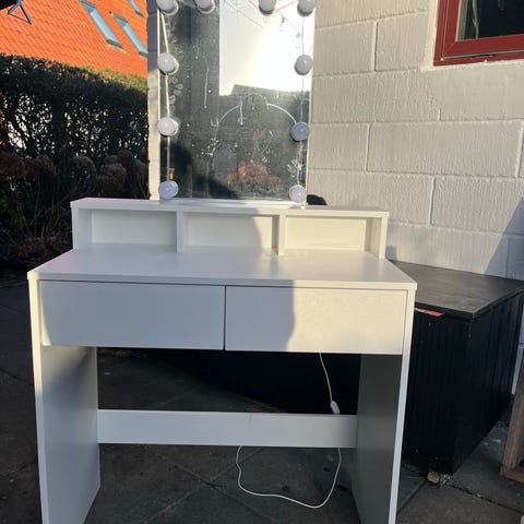 Sminkebord med skuffe og spejl til salg. Rigtig fin til pige værelse med mulighed for opbevaring med skuffe. Nypris 350kr.