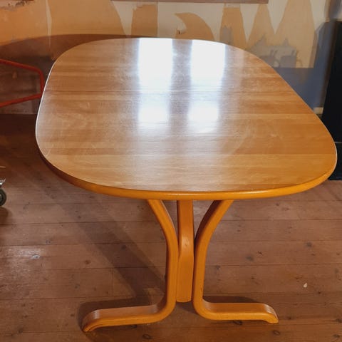 Bordpladen har synlige brugsmærker, som også ses på vedlagte billeder. Derudover fejler bordet intet.
