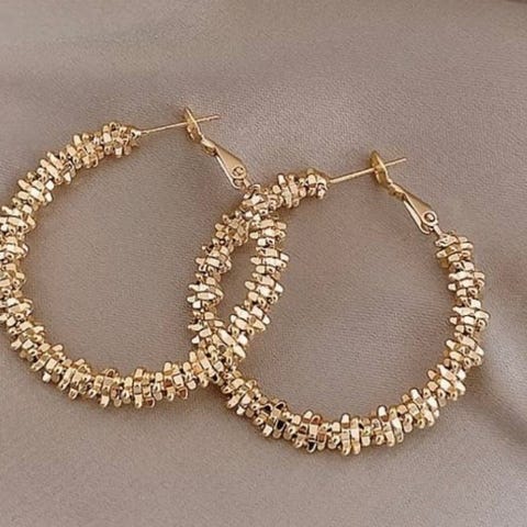 Forgyldte øreringe, der er så diskrete, at de næsten er usynlige. Øreringene er 5,5 cm lange og de er helt nye