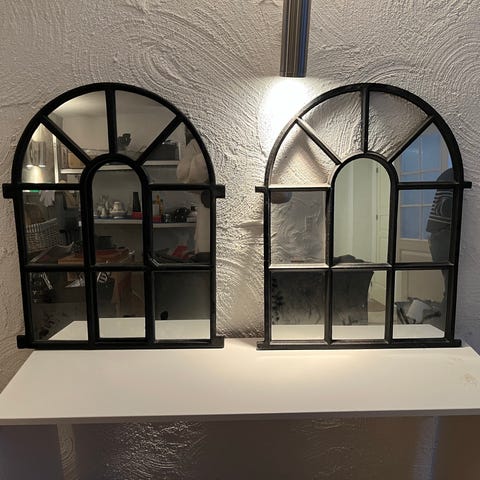 Skal svejses/loddes sammen. Dertil er de tre øverste spejle knækkede. Se fotos af, hvordan det så ud før.