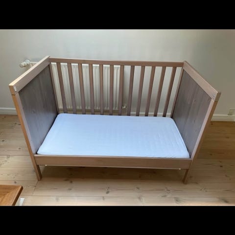 IKEA SUNDVIK Tremmeseng i hvid. Pæn og velholdt brugt i ca 2 år. Der følger madras og rullemadras med fra Jysk. Nypris i alt 2000,-