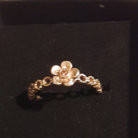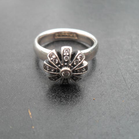 FIN SØLVRING MED GRØN STEN OG GENNEMBRUDT MØNSTER !