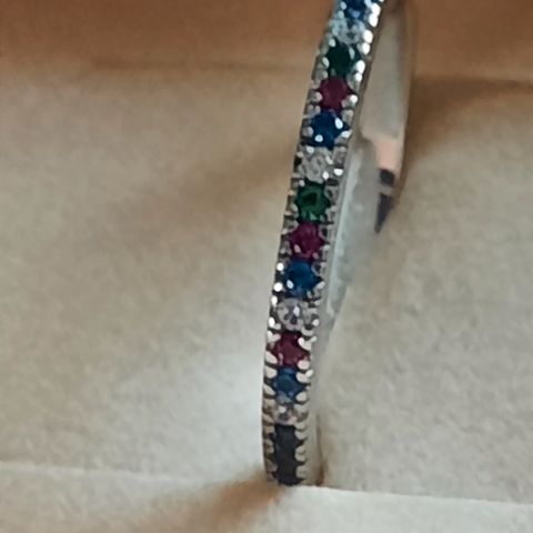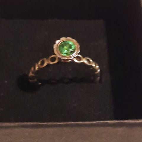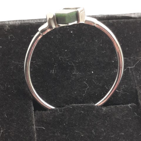 SØD LILLE ,SMAL RING, MED LYSLILLA STEN ! DEN HAR MØNSTER PÅ RING SKINNEN ! DET ER STR.54 !