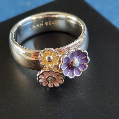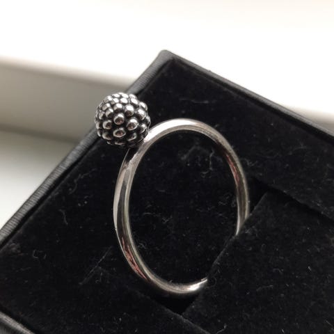 SØD SØLVRING 925.SPJ. MED LILLE LYSLILLA STEN OG MØNSTER PÅ RINGSKINNE !!