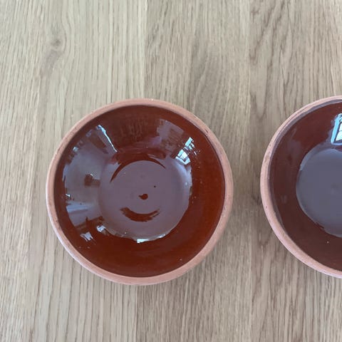 Keramik Skåle på fod. Dansk Keramik. 2 store skåle på fod. Kan bruges til flere formål, også efter jul. H - 13,5 cm. D - 17,5 cm. Vægt ca 700 gr pr stk. Hel og fin stand. Pris 25 kr pr stk. samlet pris 40 kr. Pynt følger ikke med.