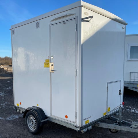 Denne badevogn, også kendt som en badmobil, er en fleksibel og praktisk løsning til byggepladser, events, festivaler og renoveringsprojekter, hvor der er behov for separate badefaciliteter. Vognen er indrettet med fuldt udstyret badeværelse, der indeholder brusekabine, toilet, håndvask og omklædningsplads.