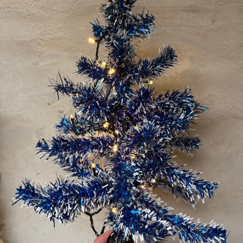 Lille juletræ i plast lametta og metallic glitrende indpakning