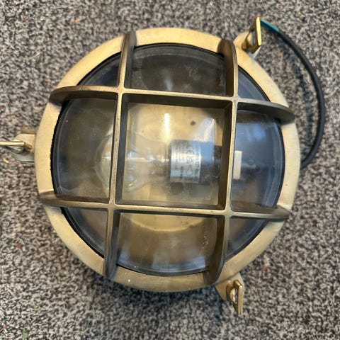 Messingfarvet væklampe med LED-lys, giver hyggelig belysning