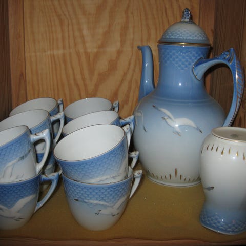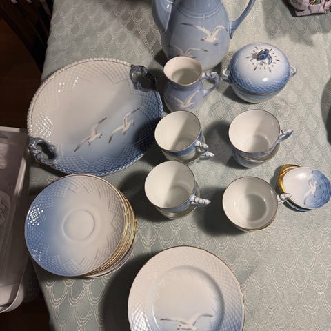 Mågekaffestel med guldkant