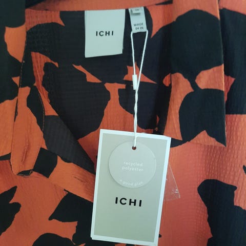 Bluse, ICHI, str. 38, Blå/Hvid, Ubrugt, Smuk dyb udskæring