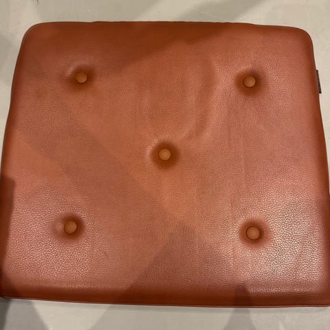 Rigtig flot og meget velholdt ældre Hans J. Wegner kinastol i kirsebær træ og original ældre patineret hynde i naturlæder. Stolen er i sublim stand uden fejl/mangler.