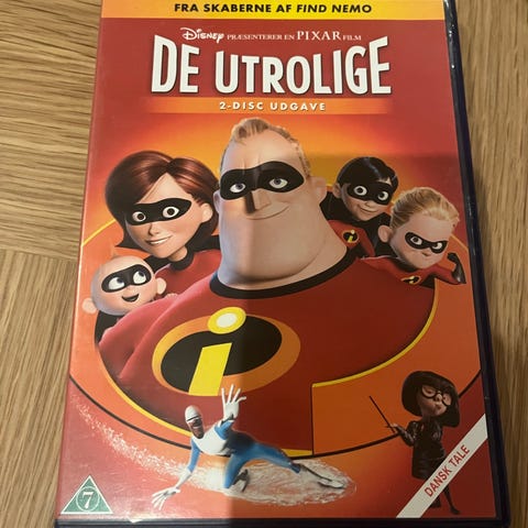 Pixar De Utrolige DVD 2-disc udgave med dansk sprog. Indeholder filmen samt bonusmateriale som bag kulisserne, slettede scener og kommentarspor. Produktet er i standard DVD-format og leveres i original emballage.