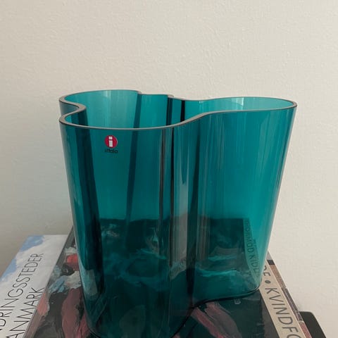 Mundblæst glas, designet af Alvar Aalto i 1936. Organisk formsprog, asymmetrisk bølger, elegant udtryk